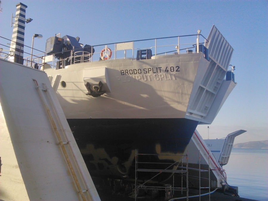The vessel Plovput Split of the working title Newbuilding 482 sailed into Dock 4 for a final overhaul before its handover. The vessel is a concrete plant vessel built in Brodosplit d.d. and owned by the Split company Plovput d.o.o.